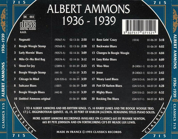 1. Albert Ammons And His Rhythm Kings - Nagasaki 2:502. Albert Ammons And His Rhythm Kings - Boogie Woogie Stomp 2:583. Albert Ammons And His Rhythm Kings - Early Mornin' Blues 3:094. Albert Ammons And His Rhythm Kings - Mile-Or-Mo Bird Rag 3:125. Albert Ammons - Shout For Joy 2:236. Albert Ammons - Boogie Woogie Stomp 3:357. Albert Ammons - Chicago In Mind 3:598. Albert Ammons - Suitcase Blues 3:499. Albert Ammons - Boogie Woogie Blues 3:3910. Albert Ammons - Untitled Ammons Original 4:0411. Albert Ammons - Bass Goin' Crazy 3:1812. Albert Ammons - Backwater Blues 4:0213. Albert Ammons - Changes In Boogie Woogie 4:0414. Albert Ammons - Easy Rider Blues 4:0915. Harry James (2), The Boogie Woogie Trio - Woo-Woo 3:1216. Harry James (2), The Boogie Woogie Trio - Jesse 2:4217. J.C. Higginbotham Quintet - Weary Land Blues 2:4918. Port Of Harlem Jazzmen - Port Of Harlem Blues 4:2819. Port Of Harlem Jazzmen - Mighty Blues 4:3220. Port Of Harlem Jazzmen - Rocking The Blues 4:21