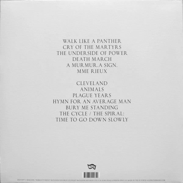 A1. Walk Like A Panther A2. Cry Of The Martyrs A3. The Underside Of Power A4. Death March A5. A Murmur. A Sign. A6. Mme Rieux B1. Cleveland B2. Animals B3. Plague Years B4. Hymn For An Average Man B5. Bury Me Standing B6. The Cycle / The Spiral: Time To Go Down Slowly