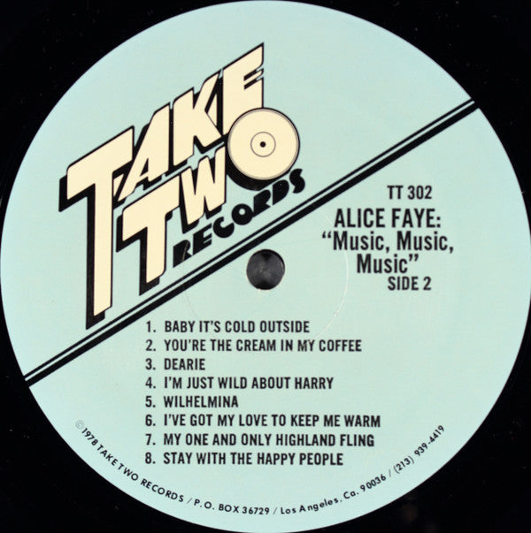 A1. Music, Music, Music A2. You Told A Lie A3. Let's Take An Old Fashioned Walk A4. Rhode Island Is Famous For You A5. Rain A6. They All Laughed A7. Clancy Lowered The Boom A8. You Were Meant For Me B1. Baby It's Cold Out There B2. You're The Cream In My Coffee B3. Dearie B4. I'm Just Wild About Harry B5. Wilhelmina B6. I've Got My Love To Keep Me Warm B7. My One And Only Highland Fling B8. Stay With The Happy People