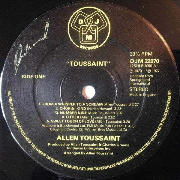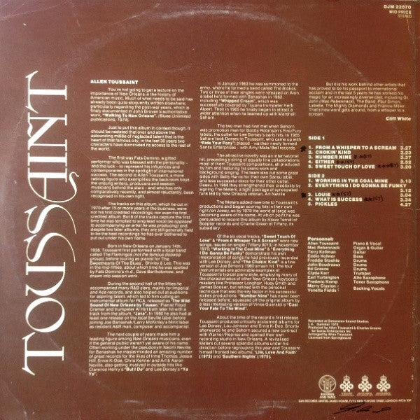 A1. From A Whisper To A Scream 3:27 A2. Chokin' Kind 3:23 A3. Sweet Touch Of Love 3:20 A4. What Is Success 3:34 A5. Working In The Coal Mine 3:13 B1. Everything I Do Gonna' Be Funky 3:12 B2. Pickles 4:27 B3. Louie 3:04 B4. Either 2:52 B5. Cast Your Fate To The Wind 3:19