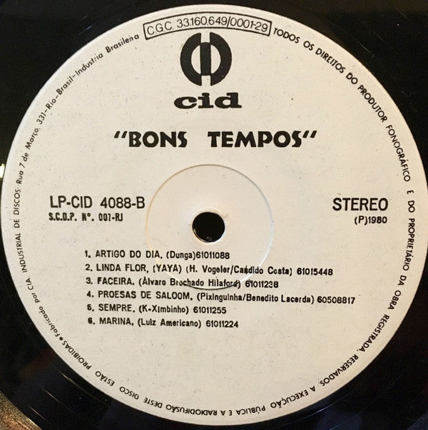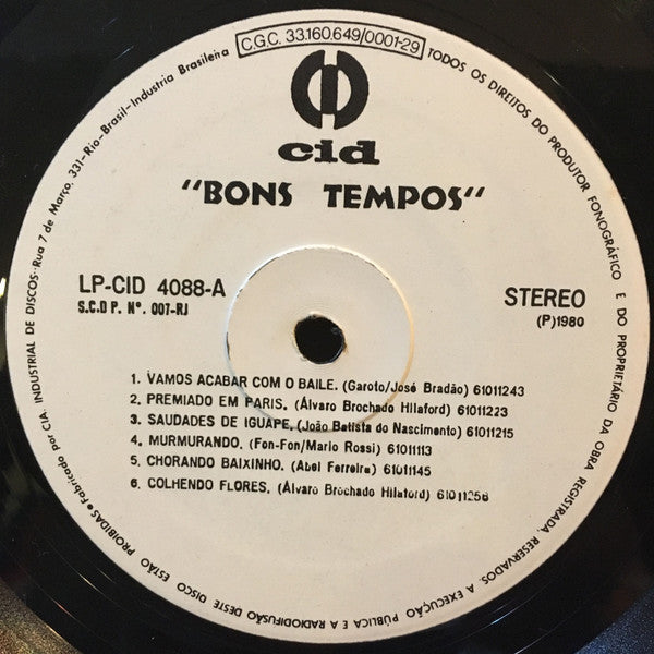 A1. Vamos Acabar Com O Baile A2. Premiado Em Paris A3. Saudades De Iquape A4. Murmurando A5. Chorando Baixinho A6. Colhendo Flores B1. Artigo Do Dia B2. Linda Flor (Yayá) B3. Faceira B4. Proesas De Saloom B5. Sempre B6. Marina