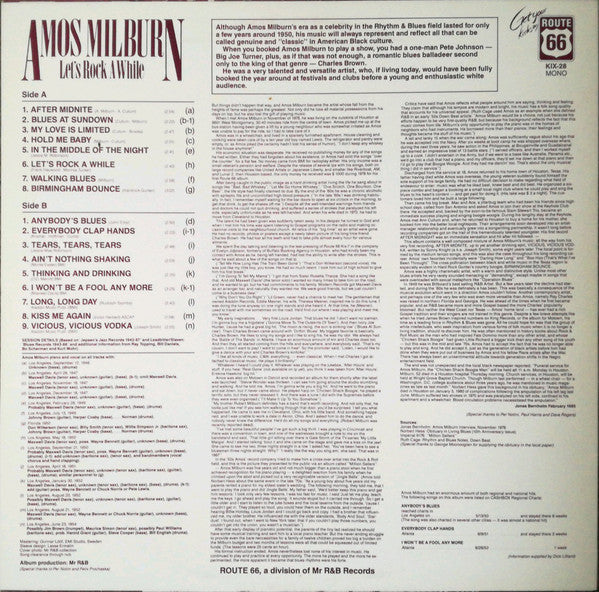 A1. After Midnite 2:54 A2. Blues At Sundown 2:22 A3. My Love Is Limited 2:47 A4. Hold Me Baby 2:51 A5. In The Middle Of The Night 2:41 A6. Let's Rock A While 2:40 A7. Walking Blues 2:58 A8. Birmingham Bounce 3:02 B1. Anybody's Blues 2:50 B2. Everybody Clap Hands 2:23 B3. Tears, Tears, Tears 2:48 B4. Ain't Nothing Shaking 2:53 B5. Thinking And Drinking 2:25 B6. I Won't Be A Fool Any More 3:25 B7. Long, Long Day 2:42 B8. Kiss Me Again 1:58 B9. Vicious, Vicious Vodka 2:55