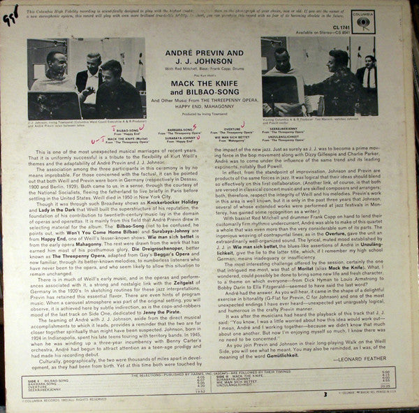 A1. Bilbao-Song 4:05 A2. Barbara-Song 6:07 A3. Overture 5:05 A4. Seeräuberjenny 4:20 B1. Mack The Knife (Moritat) 5:00 B2. Surabaya-Johnny 4:15 B3. Wie Man Sich Bettet 6:00 B4. Unzulänglichkeit 4:55