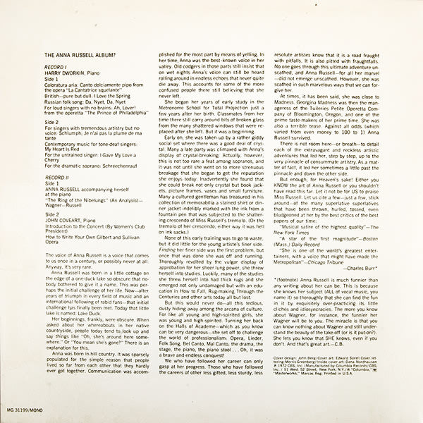 Reissue of the 1953 'Anna Russell Sings?' and 'Anna Russell Sings! Again?' albums as a double album.
