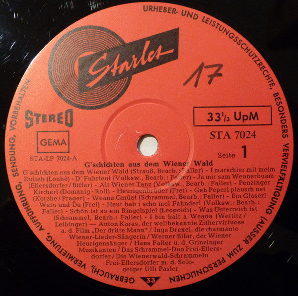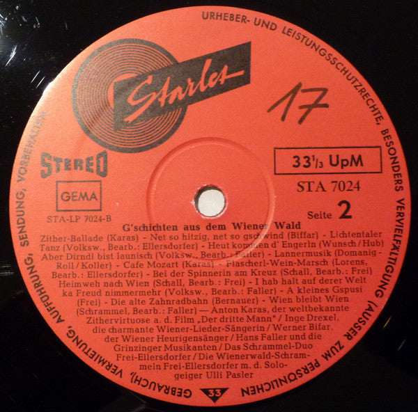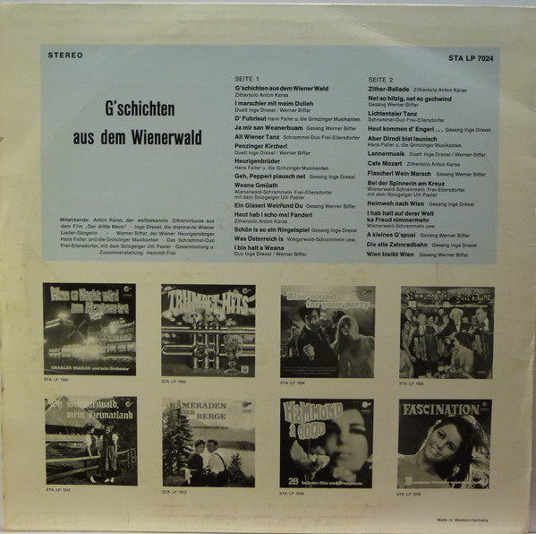 A1. G'schichten Aus Dem Wiener Wald A2. I Marschier Mit Meim Dulieh A3. D' Fuhrleut A4. Ja Mir San Weanerbuam A5. Alt Wiener Tanz A6. Penzinger Kircherl A7. Heurigenbrüder A8. Geh, Pepperl Plausch Net A9. Weana Gmüath A10. Ein Glaserl Wein Und Du A11. Heut Hab I Scho Mei Fanderl A12. Schön Is So Ein Ringelspiel A13. Was Österreich Is A14. I Bin Halt A Weana B1. Zither-Ballade B2. Net So Hitzig, Net So Gschwind B3. Lichtentaler Tanz B4. Heut Kommen D'Engerl.... B5. Aber Dirndl Bist Launisch B6. Lannermusik B7. Cafe Mozart B8. Flascherl Wein Marsch B9. Bei Der Spinnerin Am Kreuz B10. Heimweh Nach Wien B11. I Hab Halt Auf Derer Welt Ka Freund Nimmermehr B12. A Kleines G'spusi B13. Die Alte Zahnradbahn B14. Wien Bleibt Wien