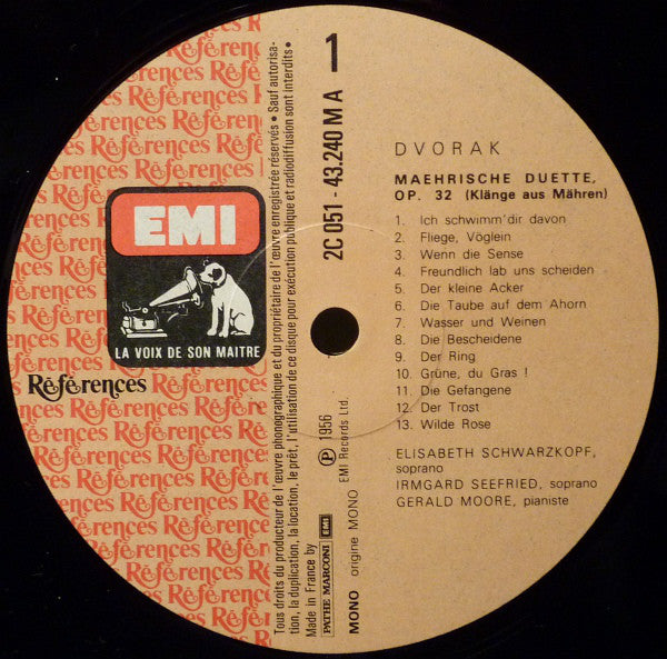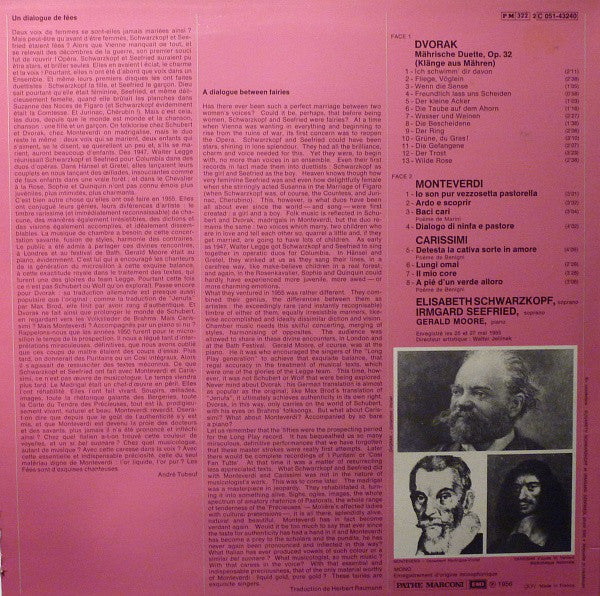 Antonín Dvořák, Claudio Monteverdi, Giacomo Carissimi, Elisabeth Schwarzkopf, Irmgard Seefried, Gerald Moore - Duos Pour Sopranos (LP, Mono, RE)