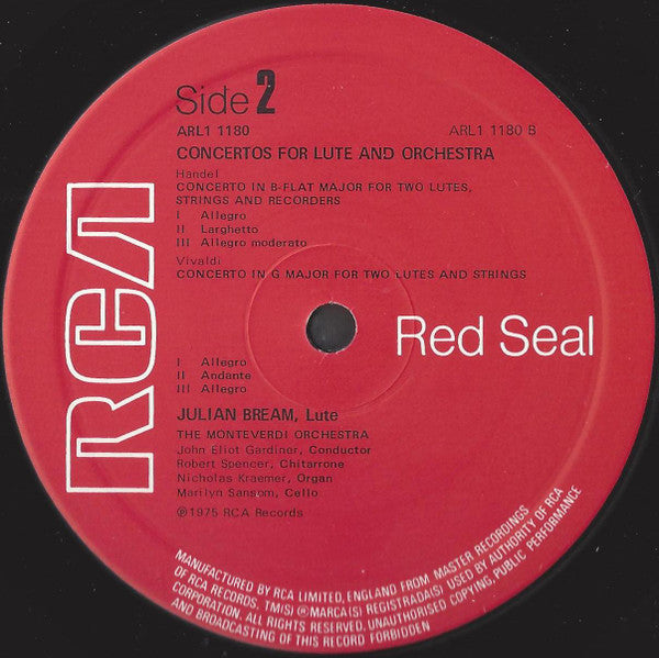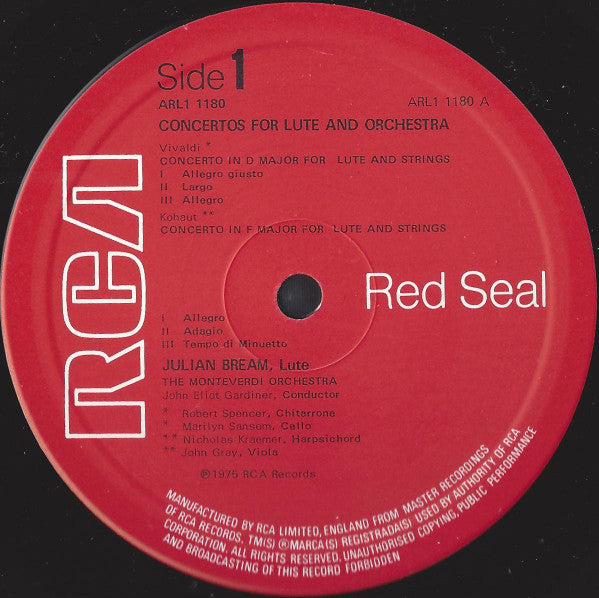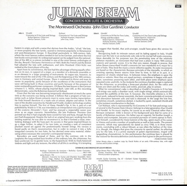 Antonio Vivaldi / Georg Friedrich Händel / Karl Kohaut, Julian Bream, The Monteverdi Orchestra, John Eliot Gardiner - Concertos For Lute & Orchestra (LP)