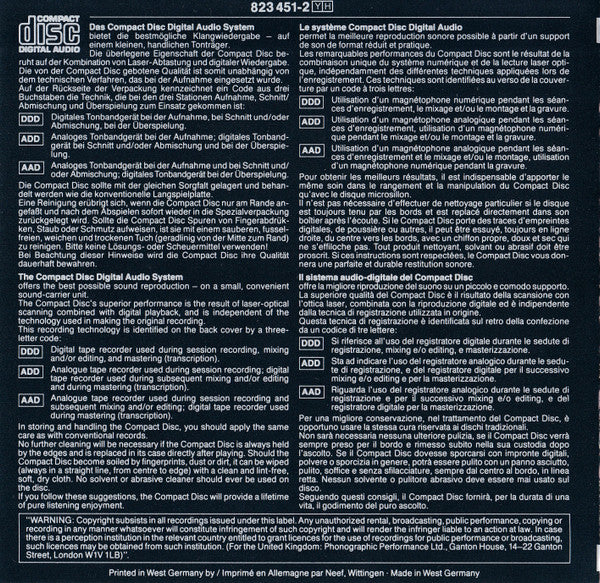 Barcode 0 42282 34512 7 Barcode 042282345127 Matrix / Runout 8234512 01 5 Other (Inner Mould): MADE IN THE UK Mastering SID Code IFPI L135 Mastering SID Code (above matrix ring) IFPI 04AS Mould SID Code IFPI 0475 Label Code LC 0383 Price Code POL 900