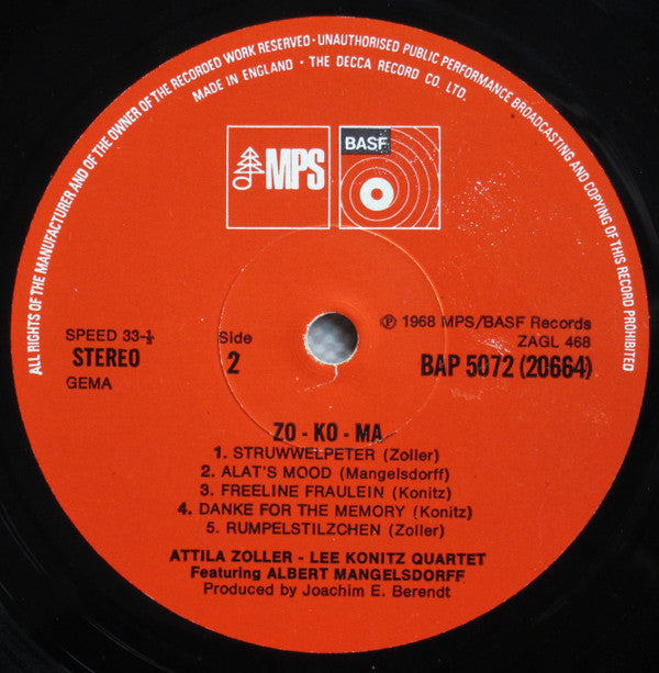 Recorded at MPS Studio, Villingen, Germany, March 13th and 14th, 1968.