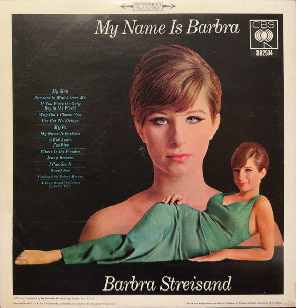 A1. My Name Is Barbra (*see note about spelling) 0:50 A2a. A Kid Again 2:09 A2b. I'm Five A3. Jenny Rebecca 3:00 A4. My Pa 2:28 A5. Sweet Zoo 1:35 A6. Where Is The Wonder 2:14 B1. I Can See It 3:05 B2. Someone To Watch Over Me 2:43 B3. I've Got No Strings 2:49 B4. If You Were The Only Boy In The World 3:26 B5. Why Did I Choose You 2:49 B6. My Man 2:57