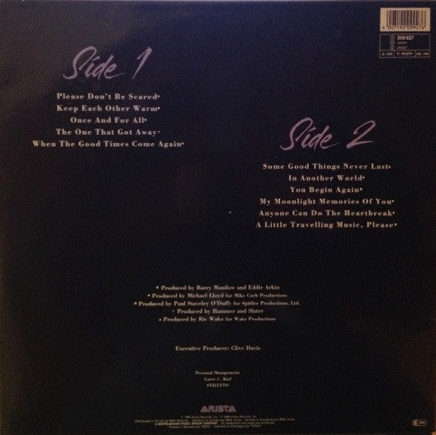 A1. Please Don't Be Scared 5:34 A2. Keep Each Other Warm 4:33 A3. Once And For All 4:15 A4. The One That Got Away 3:55 A5. When The Good Times Come Again 4:29 B1. Some Good Things Never Last 4:47 B2. In Another World 4:12 B3. You Begin Again 3:59 B4. My Moonlight Memory Of You 4:43 B5. Anyone Can Do The Heartbreak 4:22 B6. A Little Travelling Music, Please 4:23