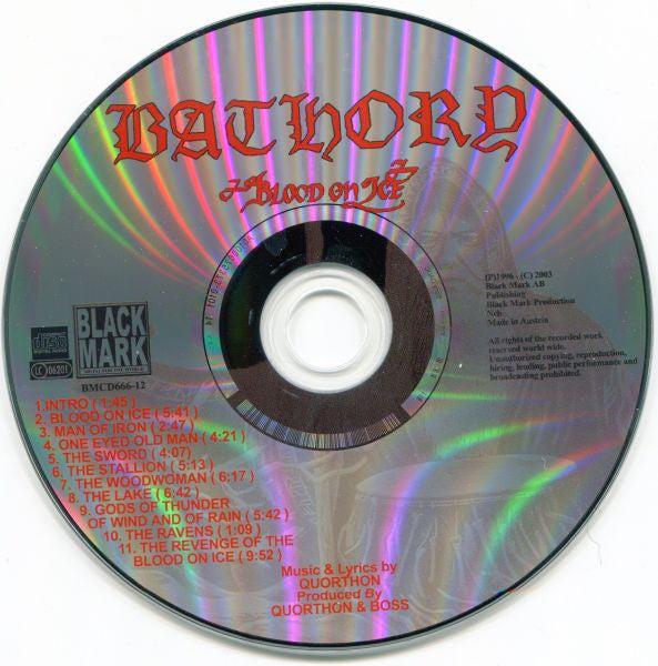 1. Intro/Blood On Ice 7:282. Man Of Iron 2:333. One Eyed Old Man 4:214. The Sword 4:085. The Stallion 5:146. The Woodwoman/The Lake 12:597. Gods Of Thunder Of Wind And Of Rain 5:418. The Ravens 1:099. The Revenge Of The Blood On Ice 9:5210. Untitled 0:23