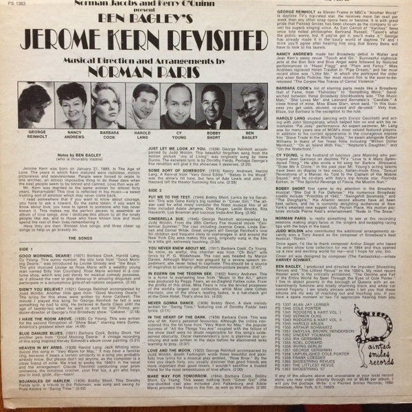 A1. Barbara Cook, Harold Lang, Cy Young (3) - Good Morning, Dearie! 2:16 A2. George Reinholt - Didn't You Believe? 2:18 A3. Cy Young (3) - I Have The Room Above 4:00 A4. Barbara Cook, Bobby Short - Blue Danube Blues 3:21 A5. Harold Lang - Heaven In My Arms 3:39 A6. Bobby Short - Bojangles Of Harlem 2:02 A7. George Reinholt - Just Let Me Look At You 2:20 A8. Nancy Andrews (2), Harold Lang - Some Sort Of Somebody 2:58 B1. Bobby Short - Put Me To The Test 2:50 B2. George Reinholt - Cinderella Sue 3:00 B3. Barbara Cook, Cy Young (3) - You Never Knew About Me 3:47 B4. Nancy Andrews (2) - In Egern On The Tegern See 4:03 B5. Bobby Short - Never Gonna Dance 3:11 B6. Barbara Cook - In The Heart Of The Dark 3:37 B7. George Reinholt - Love And The Moon 2:00 B8. Barbara Cook, Bobby Short, Cy Young (3) - Make Way For Tomorrow 2:00