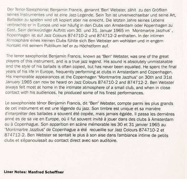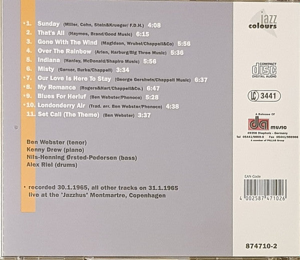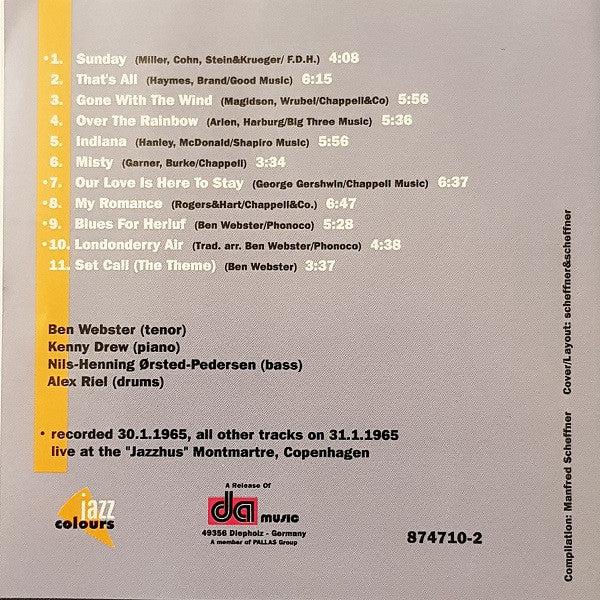 Tracks 1, 7 to 10 recorded 30.1.1965, all other tracks on 31.1.1965, live at the "Jazzhus" Montmartre, Copenhagen.
