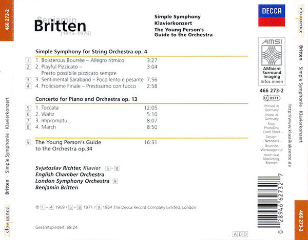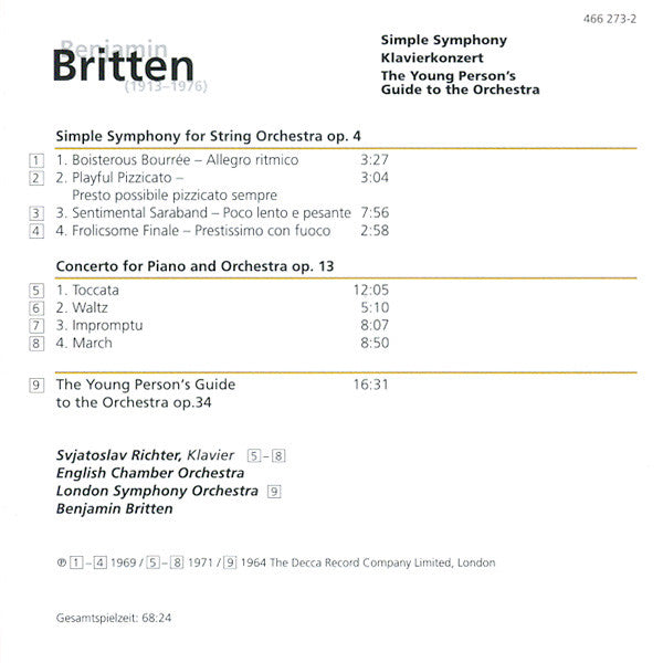 . Simple Symphony For String Orchestra Op. 4 . Concerto For Piano And Orchestra Op. 13 9. The Young Person's Guide To The Orchestra Op. 34 16:31