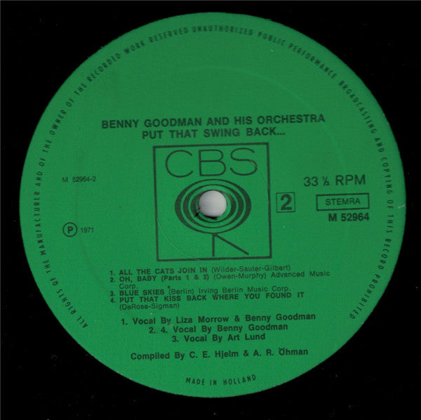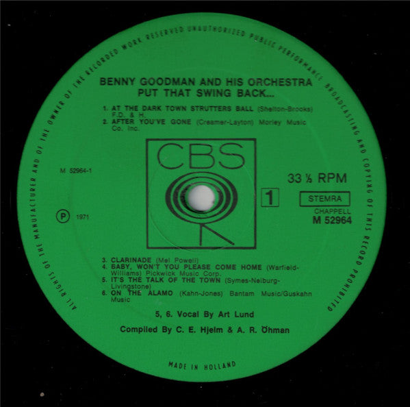 A1. At The Darktown Strutters Ball A2. After You've Gone A3. Clarinade A4. Baby, Won't You Please Come Home A5. It's The Talk Of The Town A6. On The Alamo B1. All The Cats Join In B2. Oh, Baby! B3. Blue Skies B4. Put That Kiss Back Where You Found It