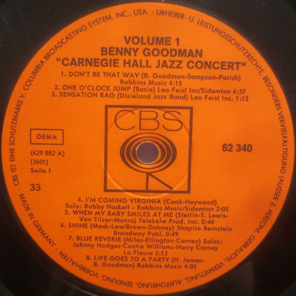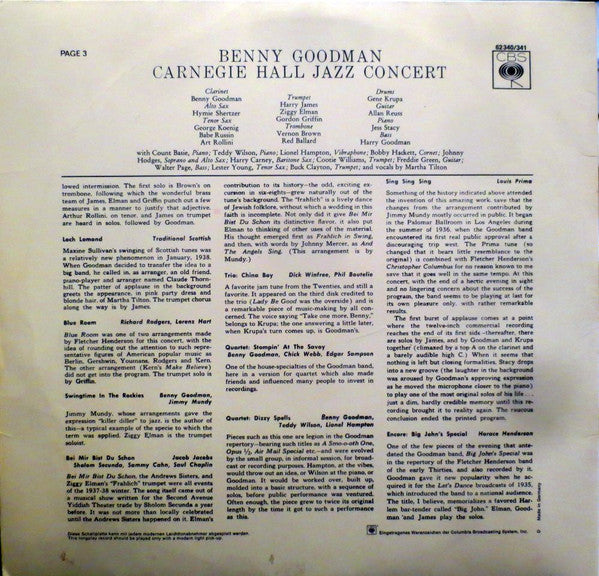 A1. Don't Be That Way 4:15 A2. One O'Clock Jump 6:37 A3. Sensation Rag 1:13 A4. I'm Coming Virginia 2:05 A5. When Baby Smiles At Me 0:44 A6. Shine 0:49 A7. Blue Reverie 3:12 A8. Life Goes To A Party 4:05 B1. Stompin At The Savoy 5:51 B2. Dizzy Spells 5:42 B3. Sing, Sing, Sing (With A Swing) 12:00 B4. Big John's Special 3:30 C1. Honeysuckle Rose 13:47 C2. Body And Soul 3:11 C3. Avalon 4:06 C4. The Man I Love 3:20 D1. I Got Rhythm 5:00 D2. Blue Skies 3:15 D3. Loch Lamond 2:56 D4. Blue Room 2:36 D5. Swintime In The Rockies 2:26 D6. Bei Mir Bist Du Schön 3:50 D7. China Boy 4:45