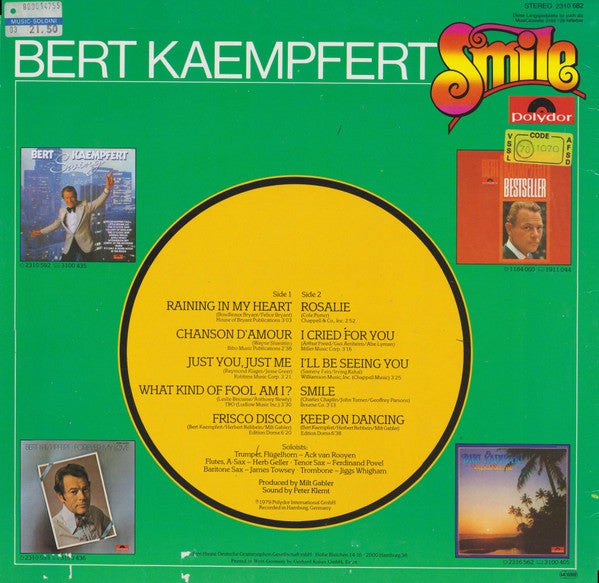 A1. Raining In My Heart 3:03 A2. Chanson D'Amour 2:38 A3. Just You, Just Me 3:21 A4. What Kind Of Fool Am I? 3:30 A5. Frisco Disco 6:20 B1. Rosalie 2:52 B2. I Cried For You 3:16 B3. I'll Be Seeing You 3:25 B4. Smile 3:13 B5. Keep On Dancing 6:38