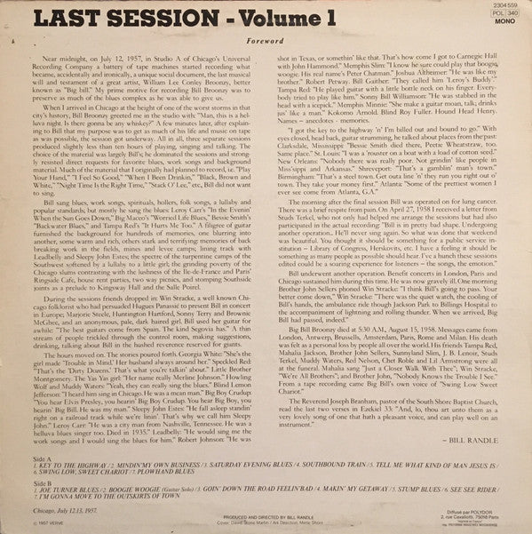 Last session recorded 12&13.7.1957 before Bill's death one year later from lung cancer.