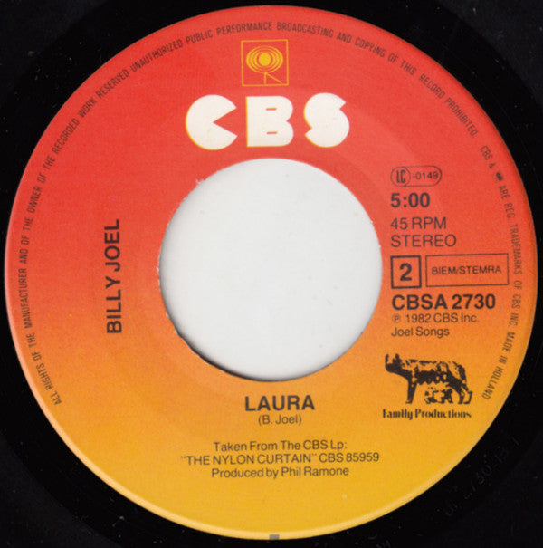 Taken From The CBS LP "72046" CBS 85959 Joel Songs ℗ 1982 CBS Inc./© 1982 CBS Inc. Made in Holland (on disc) Printed in Holland (on sleeve)