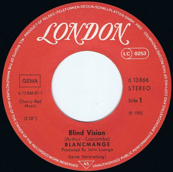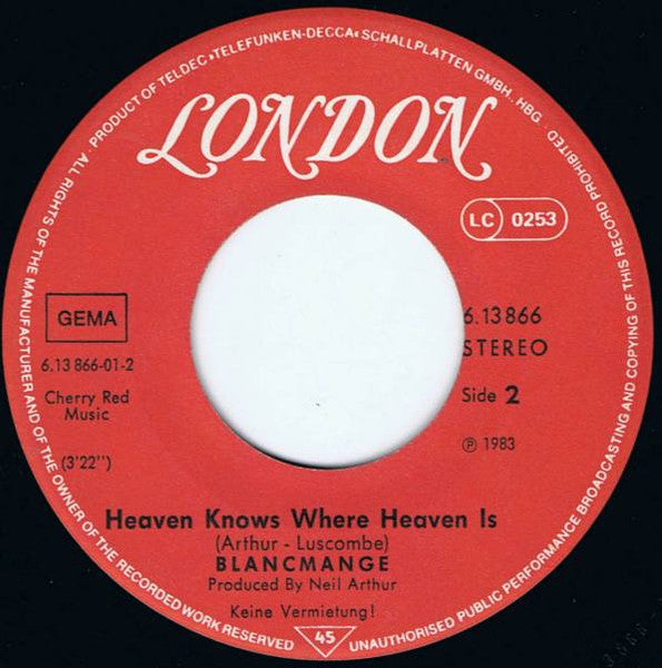 ℗ & © 1983 Cherry Red Music Made in Germany Also Available On Super Sound Maxi 6.20217 Runouts are stamped, "H1" is etched. 'Heaven Knows Where Heaven Is' is slightly different to the version that appears on the 12"