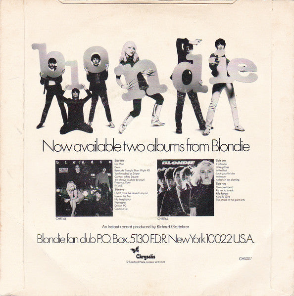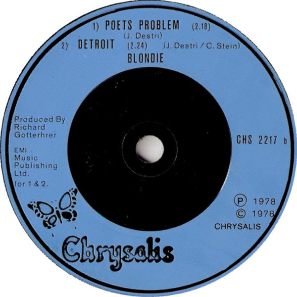 There is another UK Blue Plastic Injection-Moulded version with A side writing credit Gary Valentine below song title with the correct B side title as "Detroit 442" found here [r1927167.