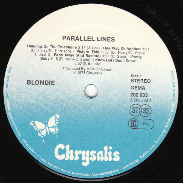 A1. Hanging On The Telephone A2. One Way Or Another A3. Picture This A4. Fade Away And Radiate A5. Pretty Baby A6. I Know But I Don't Know B1. 11:59 B2. Will Anything Happen? B3. Sunday Girl B4. Heart Of Glass B5. I'm Gonna Love You Too B6. Just Go Away