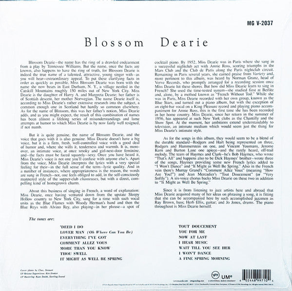 A1. 'Deed I Do A2. Lover Man (Oh Where Can You Be) A3. Everything I've Got A4. Comment Allez Vous A5. More Than You Know A6. Thou Swell A7. It Might As Well Be Spring B1. Tout Doucement B2. You For Me B3. Now At Last B4. I Hear Music B5. Wait Till You See Her B6. I Won't Dance B7. A Fine Spring Morning
