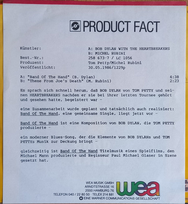 ℗ 1986 From The Motion Picture Soundtrack Album "Band Of The Hand" 253 074-1 Bob Dylan Appears Courtesy of Columbia Records