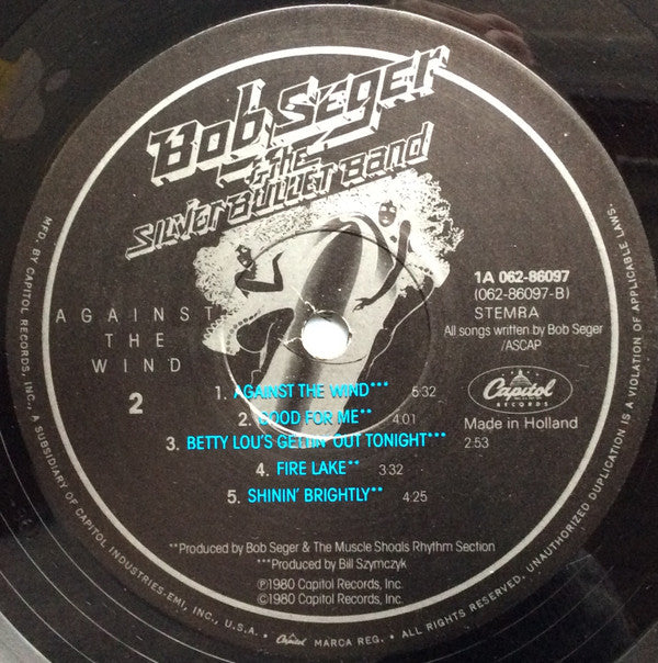 A1. The Horizontal Bop 4:00 A2. You'll Accomp'ny Me 3:58 A3. Her Strut 3:52 A4. No Man's Land 3:41 A5. Long Twin Silver Line 4:15 B1. Against The Wind 5:32 B2. Good For Me 4:01 B3. Betty Lou's Gettin' Out Tonight 2:53 B4. Fire Lake 3:32 B5. Shinin' Brightly 4:25