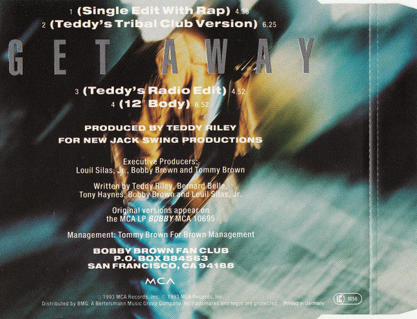 1. Get Away (Single Edit With Rap) 4:362. Get Away (Teddy's Tribal Club Version) 6:253. Get Away (Teddy's Radio Edit) 4:524. Get Away (12" Body) 6:52