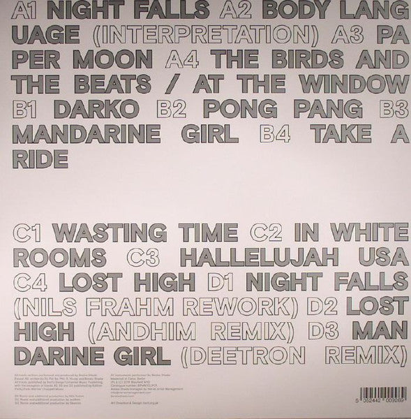A1. Night Falls 5:07 A2. Body Language (Interpretation) 5:06 A3. Paper Moon 5:04 A4. The Birds & The Beats / At The Window 5:23 B1. Darko 6:30 B2. Pong Pang 5:32 B3. Mandarine Girl 5:35 B4. Take A Ride 4:06 C1. Wasting Time 4:53 C2. In White Rooms 5:22 C3 . Hallelujah USA 2:05 C4. Lost High 4:27 D1. Night Falls (Nils Frahm Rework) 9:03 D2. Lost High (Andhim Remix) 6:38 D3. Mandarine Girl (Deetron Remix) 6:05