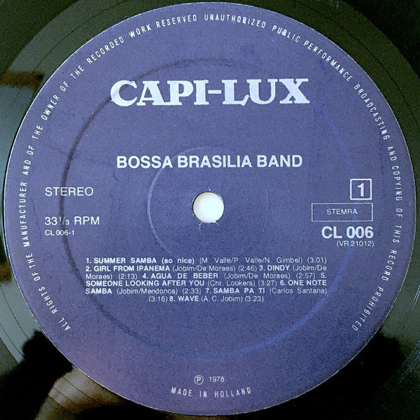 A1. Summer Samba (So Nice) 3:01 A2. Girl From Ipanema 2:46 A3. Dindy 2:13 A4. Agua De Beber 2:57 A5. Someone Looking After You 3:27 A6. One Note Samba 2:33 A7. Samba Pa Ti 3:16 A8. Wave 3:23 B1. Mas Que Nada 2:30 B2. Desafinado 3:48 B3. Here's That Rainy Day 1:49 B4. Batida Diferente 2:25 B5. You're So Sweet 4:11 B6. Corcovado 2:50 B7. Yemanja 2:12 B8. Tristeza 3:15