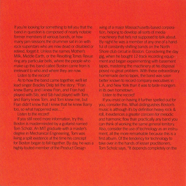 1. More Than A Feeling 4:452. Peace Of Mind 5:023. Foreplay / Long Time 7:484. Rock & Roll Band 2:595. Smokin' 4:206. Hitch A Ride 4:127. Something About You 3:488. Let Me Take You Home Tonight 4:13