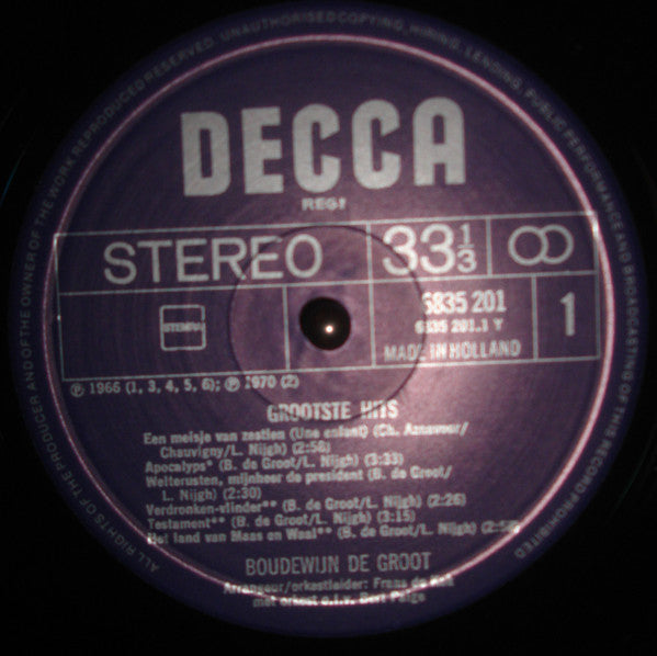 Printed in The Netherlands Made in Holland Tracks A1, A3, A4 to A6: ℗ 1966 Track B1: ℗ 1967 Tracks B2 to B4: ℗ 1968 Track A2: ℗ 1970 Tracks B5, B6: ℗ 1973 Conflicting info between back cover and center labels.