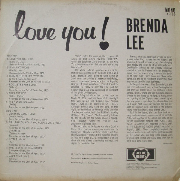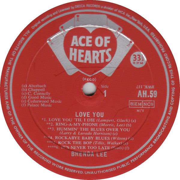A1. Love You Till I Die A2. Ring-A-My-Phone A3. Hummin' The Blues Over You A4. Rockabye Baby Blues A5. Rock The Bop A6. It's Never Too Late B1. Learning About Love B2. Bill Bailey, Wont You Please Come Home B3. Dynamite B4. Little Jonah B5. One Teenager To Another B6. Ain't That Love