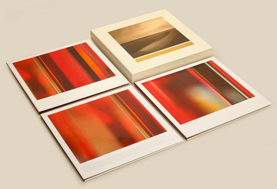 High quality 12" square lithographic print of new Brian Eno artwork, printed on 352gsm Mohawk Superfine stock, presented in full-colour, case-bound 12" cover. Lined in crimson stock with tissue paper protection.
