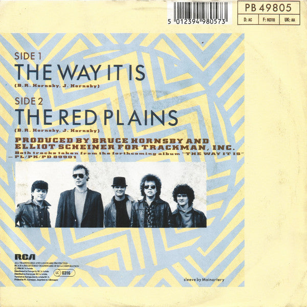 "Both tracks taken from the forthcoming album "84435" - PL/PK/PD 89901" On labels: ℗ 1986 RCA/Ariola International On sleeve: © 1986 RCA/Ariola On back sleeve: Printed in W.Germany, Imprimé en Allemagne Distributed in Europe by RCA/Ariola Distribué en Europ par RCA/Ariola Vertrieb in Europa durch Ariola/RCA On rim of labels: Manufactured in W. Germany Marketed and distributed by RCA Records Label side A credits only B. R. Hornsby as composer. Label side A and B credits only Elliot Scheiner as producer. Catalog# PB 49805 appears on the sleeve, while PB49805 appears on the labels.