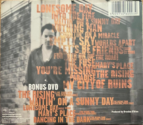 CD-1. Lonesome Day 4:05CD-2. Into The Fire 5:01CD-3. Waitin' On A Sunny Day 4:16CD-4. Nothing Man 4:20CD-5. Countin' On A Miracle 4:40CD-6. Empty Sky 3:32CD-7. Worlds Apart 6:02CD-8. Let's Be Friends (Skin To Skin) 4:18CD-9. Further On (Up The Road) 3:50CD-10. The Fuse 5:36CD-11. Mary's Place 5:59CD-12. You're Missing 5:08CD-13. The Rising 4:47CD-14. Paradise 5:34CD-15. My City Of Ruins 5:00DVD-1. The Rising DVD-2. Waitin' On A Sunny Day DVD-3. Lonesome Day DVD-4. Mary's Place DVD-5. Dancing In The Dark