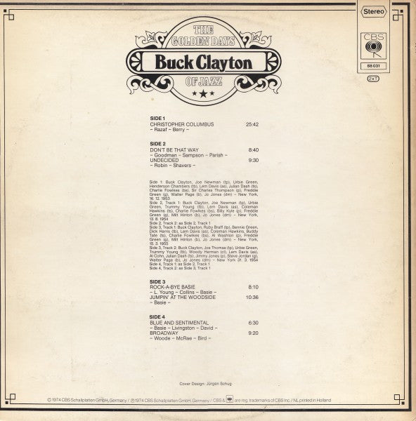 A: New York, 16 December 1953 B1, B2, D1: New York, 13 August 1954 C1, D2: New York, 15 March 1955 C2: New York, 31 March 1954 Sleeve: © 1974 CBS Schallplatten GmbH, Germany / ℗ 1974 CBS Schallplatten GmbH, Germany Label: ℗ 1974 CBS, Inc. Made in Holland