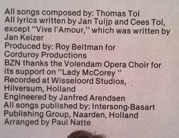 Recorded at Wisseloord Studios, Hilversum Produced for Corduroy Productions All songs published by: Intersong Basart Publishing Group, Naarden, Holland Photographs: Pim Westerweel, Naarden, Holland Artwork: Studio Myosotis, Baarn, Holland Printed in The Netherlands Made in Holland