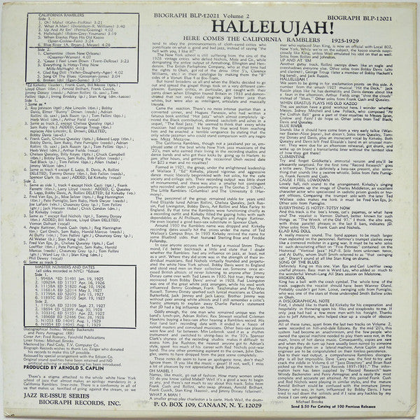 A1. Oh! Mabel! 3:21 A2. What A Man! 3:40 A3. Up And At 'Em! 4:02 A4. Hallelujah! 3:19 A5. When Erastus Plays His Old Kazoo 3:24 A6. Blue River 4:28 B1. Clementine (From New Orleans) 4:07 B2. 'Cause I Feel Lown Down 3:23 B3. Everything Is Hotsy-Totsy Now 4:13 B4. Glad Rag Doll 4:02 B5. Song Of The Blues 3:04 B6. Broken Idol 3:15
