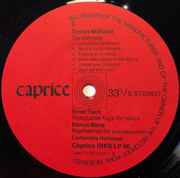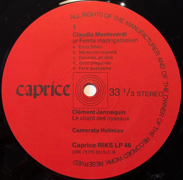 . Ur Femte Madrigalboken, 1605 A6. Le Chant Des Oyseaux 6:10. Six Sonnets B7. Geografisk Fuga För Talkör 2:52B8. Nightwinds För Vokalkvartett 7:04