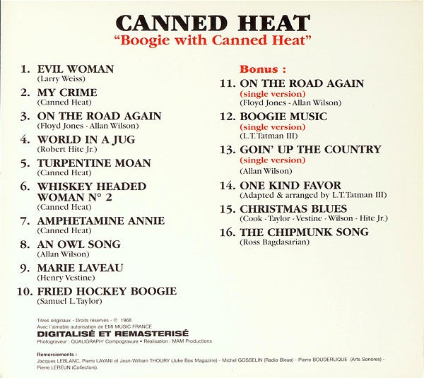 1. Evil Woman 3:022. My Crime 3:593. On The Road Again 5:014. World In A Jug 3:265. Turpentine Moan 2:546. Whiskey Headed Woman N° 2 2:517. Amphetamine Annie 3:318. An Owl Song 2:459. Marie Laveau 5:0810. Fried Hookey Boogie 11:08. Bonus: 11. On The Road Again (Single Version) 3:2212. Boogie Music (Single Version) 2:4613. Goin' Up The Country (Single Version) 2:5214. One Kind Favor 4:5515. Christmas Blues 2:3616. The Chipmunk Song 2:49