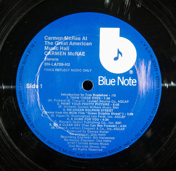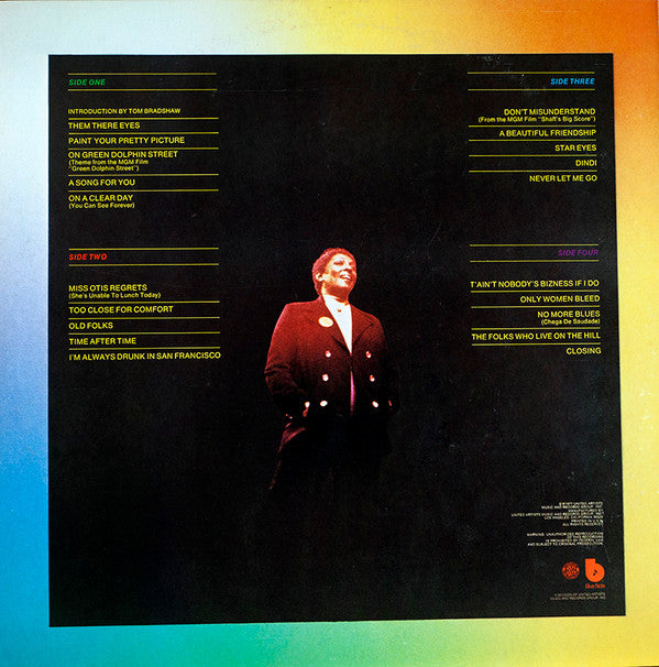 A1. Introduction By Tom Bradshaw 0:15 A2. Them There Eyes 1:38 A3. Paint Your Pretty Picture 6:06 A4. On Green Dolphin Street 3:08 A5. A Song For You 4:34 A6. On A Clear Day (You Can See Forever) 4:01 B1. Miss Otis Regrets 5:35 B2. Too Close For Comfort 3:18 B3. Old Folks 4:38 B4. Time After Time 2:45 B5. I'm Always Drunk In San Francisco 3:41 C1. Don't Misunderstand 3:15 C2. A Beautiful Friendship 3:51 C3. Star Eyes 2:27 C4. Dindi 4:21 C5. Never Let Me Go 1:57 D1. T'ain't Nobody's Bizness If I Do 4:46 D2. Only Women Bleed 4:08 D3. No More Blues (Chega De Saudade) 3:58 D4. The Folks Who Live On The Hill 3:51 D5. Closing 1:33