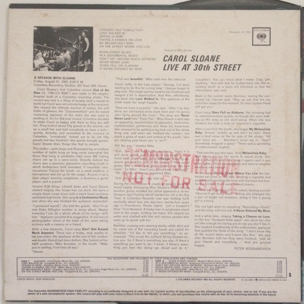 A1. Chicago 2:29 A2. Love Walked In 2:38 A3. Spring Is Here 3:45 A4. Taking A Chance On Love 2:02 A5. My Melancholy Baby 2:30 A6. On The Street Where You Live 2:39 B1. Basin Street Blues 3:08 B2. In A Sentimental Mood 3:44 B3. Don't Get Around Much Anymore 2:16 B4. Never Never Land 2:53 B5. Stars Fell On Alabama 2:03 B6. It Never Entered My Mind 2:56