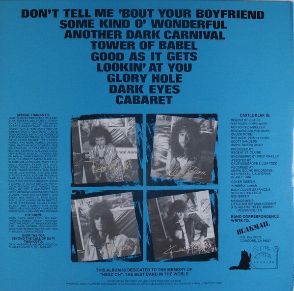 Recorded at Marin Sound Recording, San Rafael, California in July, 1986.