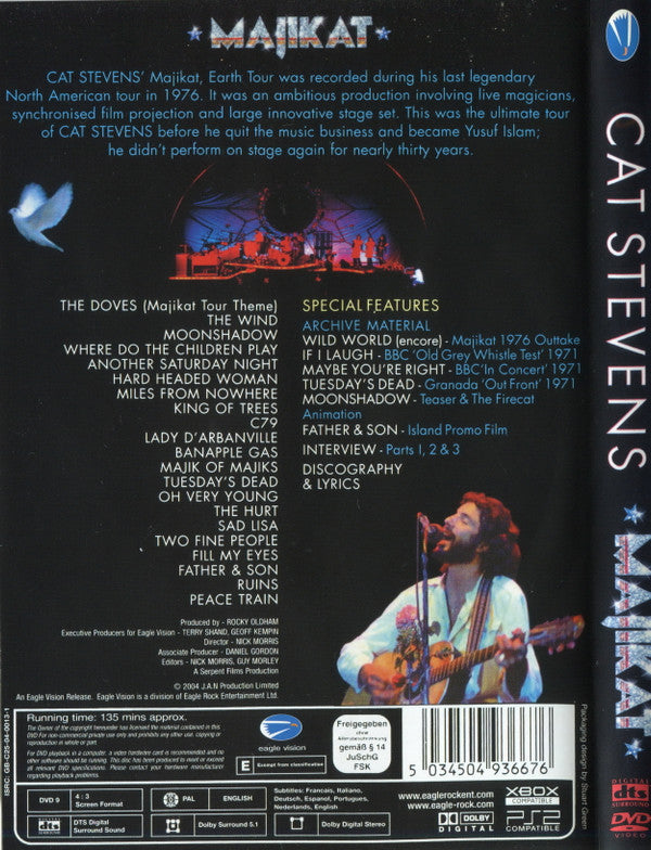 1. The Doves 2. The Wind 3. Moonshadow 4. Where Do The Children Play 5. Another Saturday Night 6. Hard Headed Woman 7. Miles From Nowhere 8. King Of Trees 9. C79 10. Lady D'Arbanville 11. Banapple Gas 12. Majik Of Majiks 13. Tuesday's Dead 14. Oh Very Young 15. The Hurt 16. Sad Lisa 17. Two Fine People 18. Fill My Eyes 19. Father & Son 20. Ruins 21. Peace Train . Special Features - Archive Material 22. Wild World (Encore) - Majikat 1976 Outtake 23. If I Laugh - BBC 'Old Grey Whistle Test' 1971 24. Maybe You're Right - BBC 'In Concert' 1971 25. Tuesday's Dead - Granada 'OutFront' 1971 26. Moonshadow - Teaser & The Firecat Animation 27. Father & Son - Island Promo Folm 28. Interview - Part 1 29. Interview - Part 2 30. Interview - Part 3