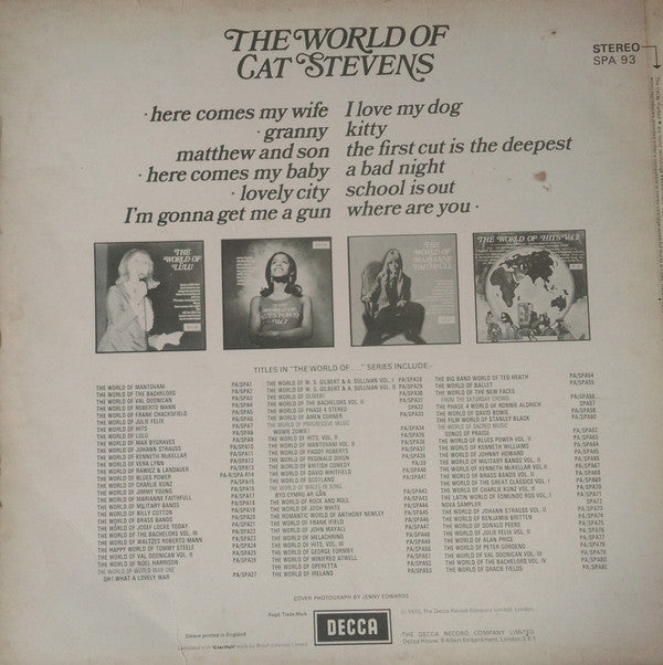 A1. Here Comes My Wife A2. Granny A3. Matthew And Son A4. Here Comes My Baby A5. Lovely City A6. I'm Gonna Get Me A Gun B1. I Love My Dog B2. Kitty B3. The First Cut Is The Deepest B4. A Bad Night B5. School Is Out B6. Where Are You