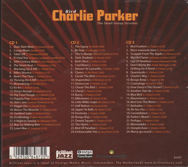 . CD1 1. Red Norvo And His Selected Sextet - Slam Slam Blues 4:282. Red Norvo And His Selected Sextet - Congo Blues 3:533. Sir Charles And His All Stars - Takin' Off 3:094. Sir Charles And His All Stars - If I Had You 3:025. Sir Charles And His All Stars - 20th Century Blues 2:566. Sir Charles And His All Stars - The Street Beat 2:367. Charlie Parker's Re-Boppers - Warming Up A Riff 2:358. Charlie Parker's Re-Boppers - Billie's Bounce 3:109. Charlie Parker's Re-Boppers - Now's The Time 3:1710. Charlie Parker's Re-Boppers - Thriving On A Riff 2:5611. Charlie Parker's Re-Boppers - Meandering 3:1712. Charlie Parker's Re-Boppers - Ko-ko 2:5613. Slim Gaillard And His Orchestra - Dizzy's Boogie 3:1014. Slim Gaillard And His Orchestra - Flat Foot Floogie 2:3415. Slim Gaillard And His Orchestra - Poppity Pop 2:5816. Slim Gaillard And His Orchestra - Slim's Jam 3:1617. Dizzy Gillespie Jazzmen - Diggin' Diz 2:5218. The Charlie Parker Quintet - Moose The Mooche 3:0519. The Charlie Parker Quintet - Yardbird Suite 2:5620. The Charlie Parker Quintet - Ornithology 3:0121. The Charlie Parker Quintet - A Night In Tunisia 3:0522. The Charlie Parker Quintet - Max (is) Making Wax 2:3323. The Charlie Parker Quintet - Lover Man 3:20. CD2 1. The Charlie Parker Quintet - The Gypsy 3:042. The Charlie Parker Quintet - Be-bop 2:553. The Charlie Parker Quartet - This Is Always 3:154. The Charlie Parker Quartet - Dark Shadows 3:075. The Charlie Parker Quartet - Bird's Nest 2:446. The Charlie Parker Quartet - Cool Blues 3:097. Charlie Parker's New Stars - Relaxin' At Camarillo 3:088. Charlie Parker's New Stars - Cheers 3:069. Charlie Parker's New Stars - Carvin' The Bird 2:4710. Charlie Parker's New Stars - Stupendous 2:5511. The Charlie Parker All-Stars - Donna Lee 2:3312. The Charlie Parker All-Stars - Chasin' The Bird 2:4413. The Charlie Parker All-Stars - Cheryl 2:5814. The Charlie Parker All-Stars - Buzzy 2:2915. The Charlie Parker All-Stars - Milestones 2:3616. The Charlie Parker All-Stars - Little Willie Leaps 2:5017. The Charlie Parker All-Stars - Half Nelson 2:4318. The Charlie Parker All-Stars - Sippin' At Bells 2:2219. The Charlie Parker Quintet - Dexterity 3:0020. The Charlie Parker Quintet - Bongo Bop 2:4621. The Charlie Parker Quintet - Dewey Square 3:1022. The Charlie Parker Quintet - The Hymn 2:3423. The Charlie Parker Quintet - Bird Of Paradise 3:1224. The Charlie Parker Quintet - Embraceable You 3:24. CD3 1. The Charlie Parker Quintet - Bird Feathers 2:542. The Charlie Parker Quintet - Klact-oveeseds-tene 3:073. The Charlie Parker Quintet - Scrapple From The Apple 2:594. The Charlie Parker Quintet - My Old Flame 3:155. The Charlie Parker Quintet - Out Of Nowhere 3:086. The Charlie Parker Quintet - Don't Blame Me 2:487. The Charlie Parker Sextet - Drifting On A Reed 2:588. The Charlie Parker Sextet - Quasimodo 2:549. The Charlie Parker Sextet - Charlie´s Wig 2:4410. The Charlie Parker Sextet - Bongo Beep 2:5911. The Charlie Parker Sextet - Crazeology 3:0012. The Charlie Parker Sextet - How Deep Is The Ocean? 3:2513. The Charlie Parker All-Stars - Another Hair-do 2:3814. The Charlie Parker All-Stars - Blue Bird 2:5015. The Charlie Parker All-Stars - Klaunstance 2:4516. The Charlie Parker All-Stars - Bird Get's The Worm 2:3517. The Charlie Parker All-Stars - Barbados 2:3018. The Charlie Parker All-Stars - Ah-leu-cha 2:5519. The Charlie Parker All-Stars - Constellation 2:2719. The Charlie Parker All-Stars - Parker's Mood 3:0420. The Charlie Parker All-Stars - Perhaps 2:3421. The Charlie Parker All-Stars - Marmaduke 2:4322. The Charlie Parker All-Stars - Steeplechase 3:0523. The Charlie Parker All-Stars - Merry-go-round 2:26